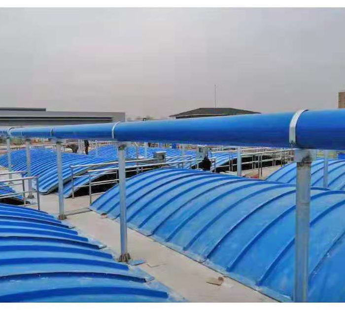 3、輕質(zhì)高強(qiáng)、安裝方便:玻璃鋼蓋板比重僅為鋼制品的1/3至1/4,固化程度高,載荷負(fù)重大,強(qiáng)度高,適用于大跨度池體,同時蓋板可分為若干小塊,便于運(yùn)輸、安裝。