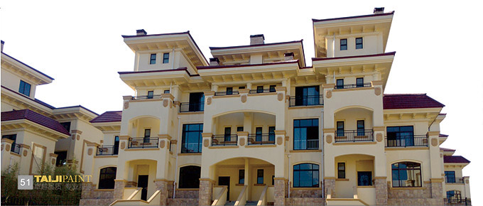 泰基藝術質感涂料由高級彈性丙烯酸乳液,白色顏料和構成紋理天然石英骨料等材料組成,附著力強,具有優異的耐候性,憎水透氣性、柔韌性,是一種貼近自然,更人性化的彈性質感涂料,通過不同的施工工藝和技巧,為建筑物提供豐富的質感效果和保護功能。近年來,在國內高檔商務住樓,多層公寓、別墅、酒店等大型項目中大量運用。